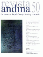 Contenido: En torno del Taqui Oncoy: texto y contexto. Hélène Roy. -- La Memoria de los dioses: el rito en la gobernabilidad incaica. Antoinette Molinié. -- La Grafía en la toponimia andina (siglos XVI-XVII) ejemplos representativos. Rodolfo Cerrón-Palomino. -- Comunidades Religiosas del Cuzco: Escándalos Públicos y Sospechas de Conspiración Criolla a Fines del Siglo XVIII. Cora V. Bunster. -- Ak'awilláy: un pueblo autónomo durante la colonización wari en el Cusco. Véronique Bélisle, Vicentina Galiano Blanco. -- Textos y ritos del bautismo indiano en documentos notariales del siglo XVI. Ofelia Huamanchumo de la Cuba. -- El Servicio personal en el extremo sur de Virreinato del Perú: el caso de Córdoba a fines del siglo XVII. Constanza González Navarro. -- Un Documento sobre los panos meridionales en el Mojos jesuítico (1753). Diego Villar, Lorena Córdoba, lsabelle Combés. -- El Conflicto entre eurocentrismo y empatía en la literatura de viajes de Humboldt. Eduardo Muratta Bunsen.