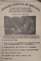 Contenido: Eco turismo en el nuevo milenio. -- La metáfora de la montaña. -- Informe del primer congreso extraordinario de Defensa del Patrimonio Cultural y Monumental del Perú conservemos Machupicchu. -- Herpéfauna preliminar del Santuario Histórico de Machupicchu. -- Política turística y tendencias del mercado para el próximo milenio. -- Positiva labor del INC Cusco. -- El patrimonio natural en el Perú. -- Juchuy Qosqo.