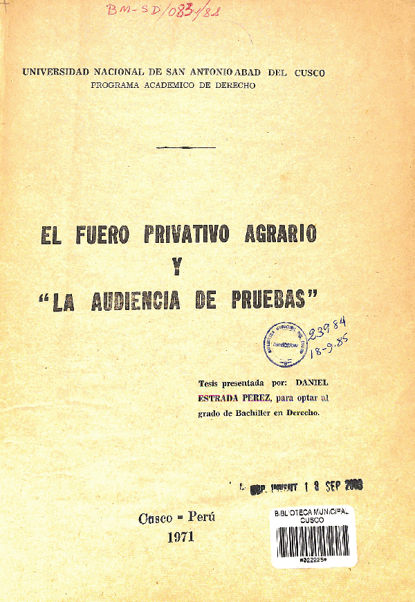 El fuero privativo agrario y la audiencia de pruebas /